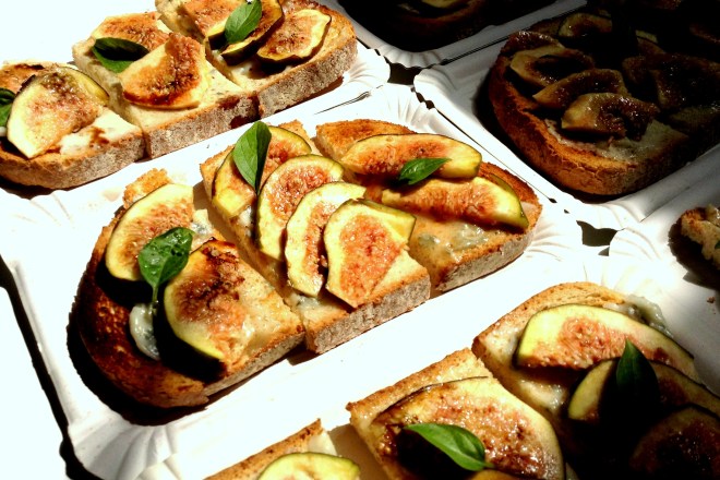 Untar la preparación en las tostadas, cortar los higos en laminas y repartirlas encima del preparado.